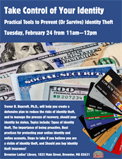 Brewster Ladies' Library presents Take Control of Your Identity: Practical Tools to Prevent (Or Survive) Identity Theft